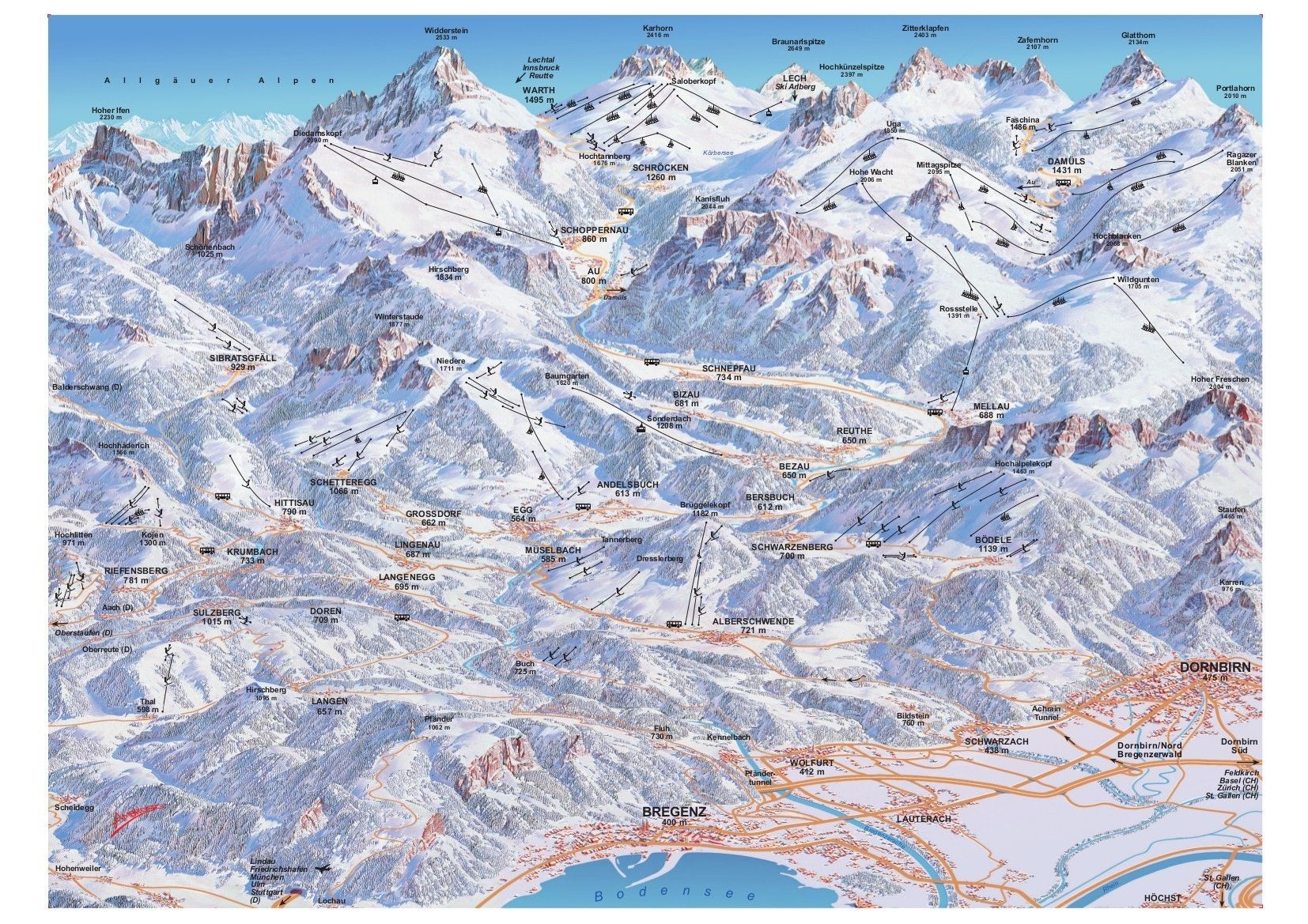 Au este situat în Oberlauf der Bregenzerach, la o altitudine de 800 de metri, și se numără printre cele mai importante destinații turistice din land. Vizitatorii au la dispoziție numeroase opțiuni de agrement, de la pârtii de schi — atât mari, cât și mai mici — până la trasee pentru schi fond și rute spectaculoase de drumeții.În plus, zona oferă activități speciale precum plimbări romantice cu sania la lumina lunii, patinaj sau drumeții cu torțe …Detalii despre staţiune