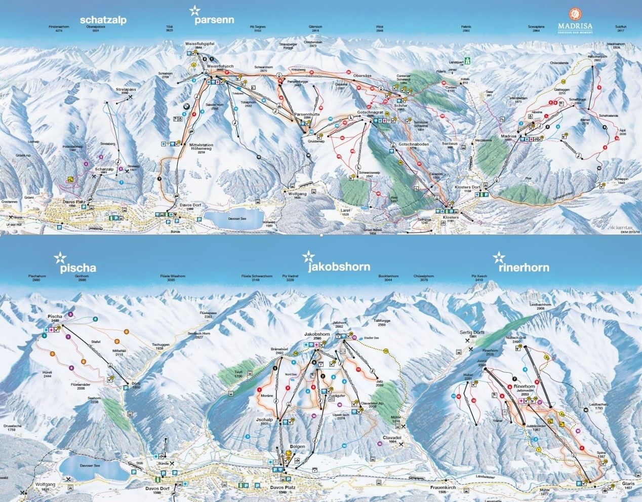 La Prättigau, în nord-estul Elveţiei, se află două populare domenii schiabile, renumite şi în afara hotarelor acestei ţări. Sunt poziţionate în o vale îngustă pe ambele părţi ale unui impozant munte cu vârfuri de aproape 3000 m. Aici vă aşteaptă nu doar ambianţă internaţională ci şi vechi tradiţii. Modernă şi tradiţională în acelaşi timp – astfel se prezintă Davos/Klosters. În domeniul vârfului de 2844 m Weissfluhgipfel se poate întâmpla destul de des să daţi de o celebritate sau alta. Cu în jur de 279 de km de pârtii nu se pune problema de ofertă insuficientă pentru sporturile de iarnă, fie pe două plăci, fie pe una. Nicăieri altundeva în Elveţia nu veţi putea vedea diferenţa între ţară şi oraş atât de evident. Şi puţine regiuni vă oferă posibilitatea de a se lăsa cuprinşi atât de repede de o lume plină de zăpadă minunată - veniţi şi descoperiţi!Drum Klosters
