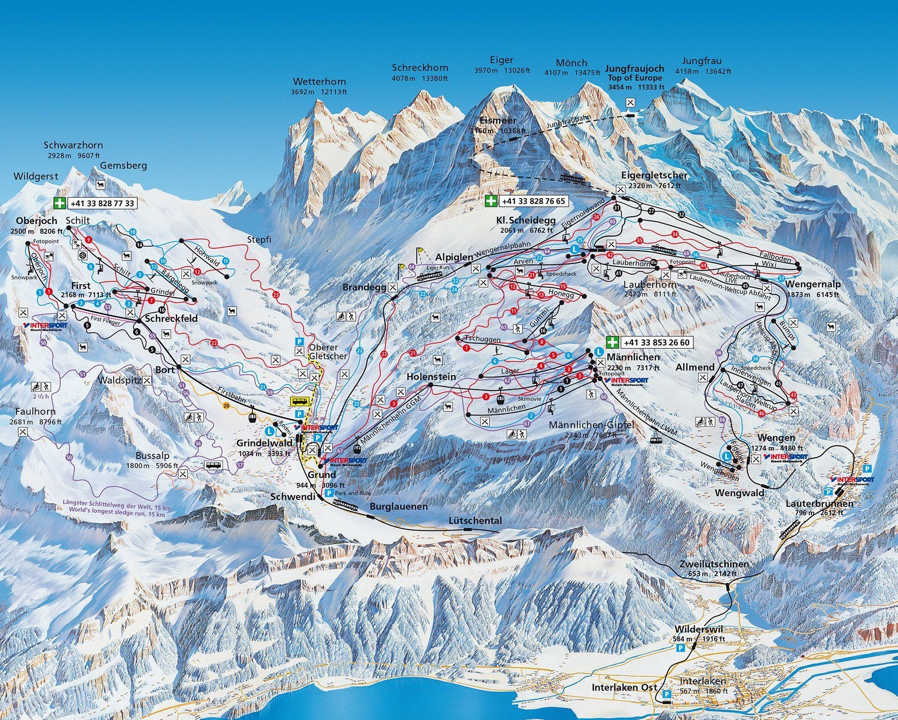 Eiger, Mönch și Jungfrau sunt împreună cu peretele nordic al Eiger-ului simbolurile Regiunii Jungfrau. Situat în inima Alpilor Bernezi, arealul se întinde între Interlaken și vârfurile Masivului Jungfrau. Panorama impresionantă a munților și lacurile glaciare cristaline întâmpină anual mii de turiști ce poposesc în renumitele stațiuni montane. Regiunea deține câteva recorduri, cum este spre exemplu limba glaciară de 23 km lungime "Jungfrau-Aletsch-Bietschhorn", cea mai lungă din Alpi încadrată în patrimoniul UNESCO. Impresionant este și binecunoscutul restaurant "Piz Gloria" de pe Vf. Schilthorn (2970 m), folosit drept culisă pentru filmul James Bond "În slujba Majestății Sale". Un alt superlativ este gara "Top of Europe" la 3454 m înălțime, la cea mai înaltă altitudine din Europa. Regiunea Jungfrau este cunoscută de fanii sporturilor de iarnă ca Eldorado.Drum Wengen